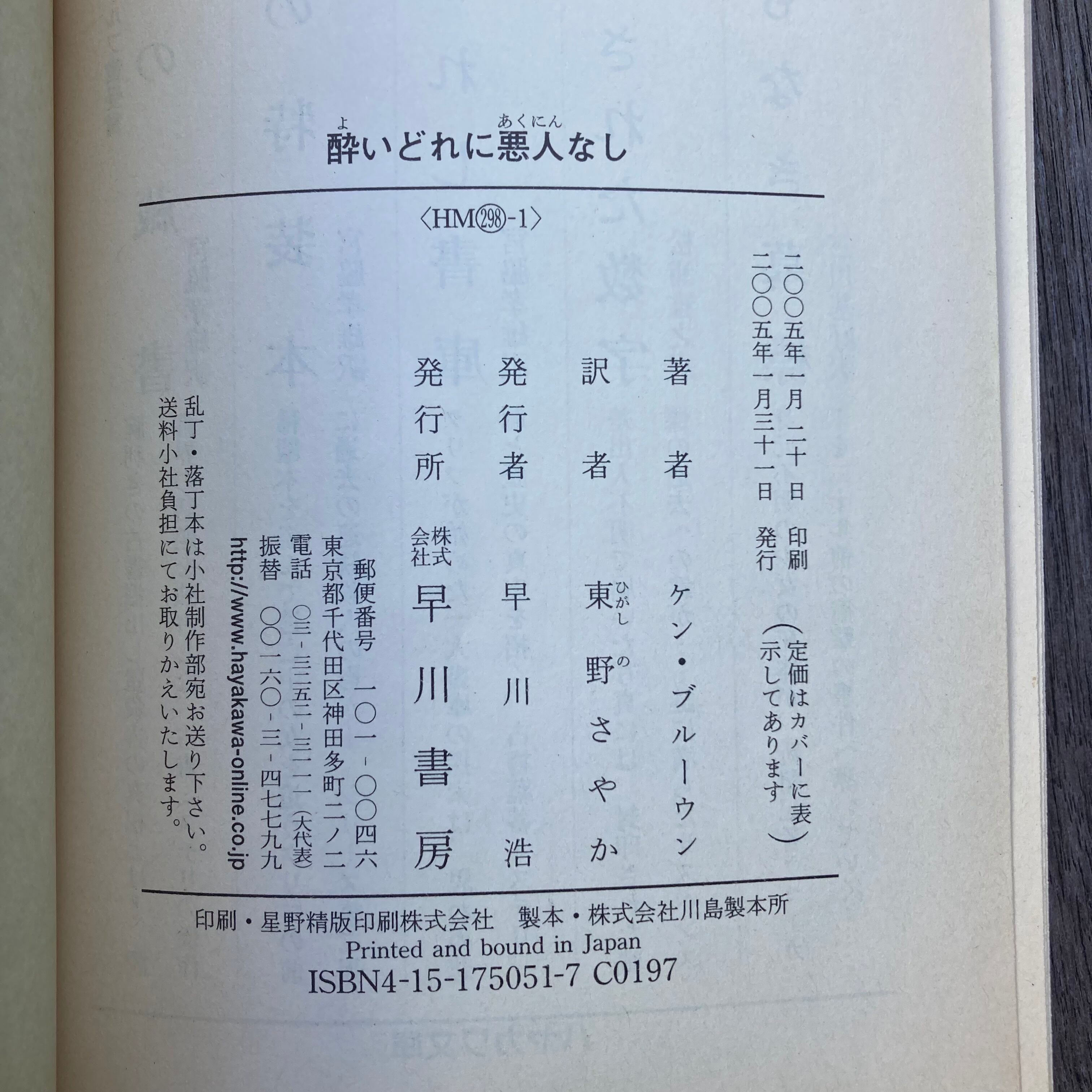「酔いどれに悪人なし」ケン・ブルーウン/東野さやか訳 (ハヤカワ・ミステリ文庫 フ 26-1)
